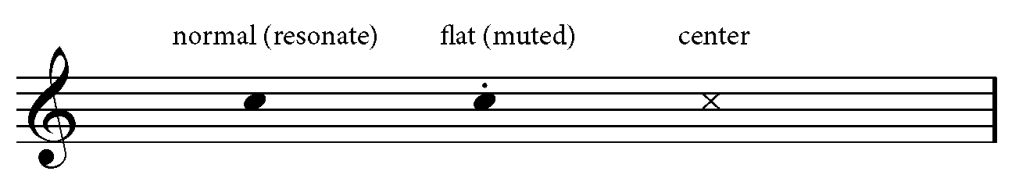 That being said, maybe you do want to lift the crotale and lower it back into the head. I would suggest simply adding a staccato marking over the muted flat area, while using a standard note head for the resonate note: