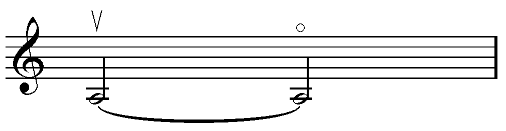 Bowed harmonics are not notated any differently, except of course that some sort of arco notation should be provided. Additionally, the bow allows for a more clear sound of the harmonic, unhindered by the sound of a mallet. When bowed, the harmonic may be activated midway, allowing a seamless transition between the notes, which can be indicated simply by providing the “o” symbol at the desired time.